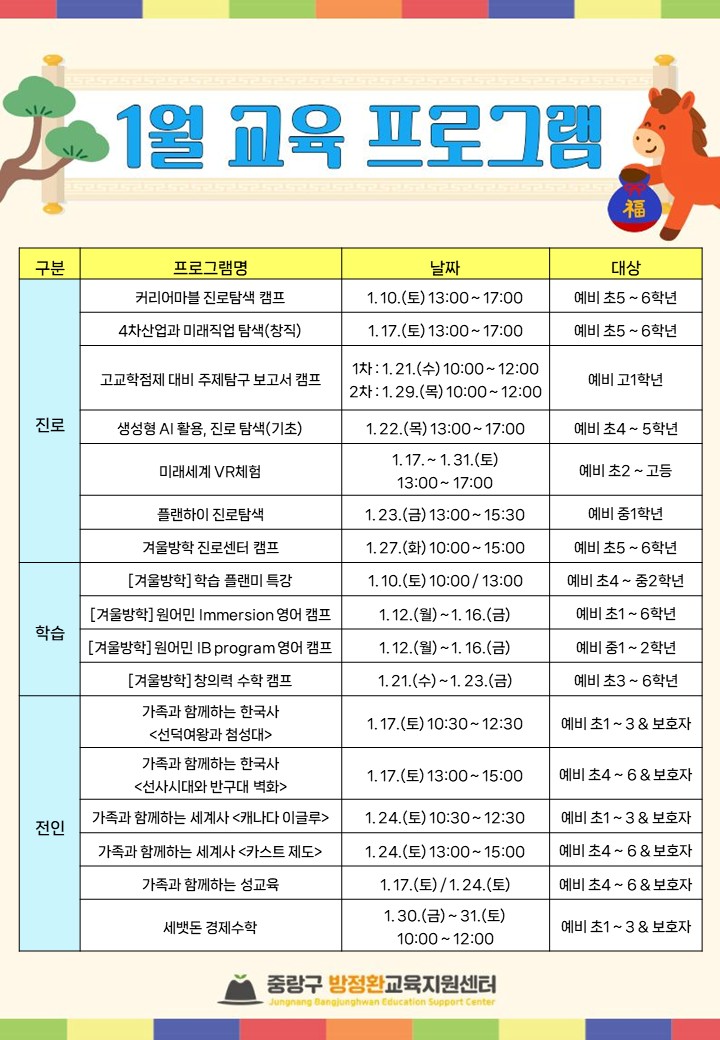 중랑구 방정환교육지원센터에서 운영하는 다양한 행사와 프로그램을 알려드립니다.
