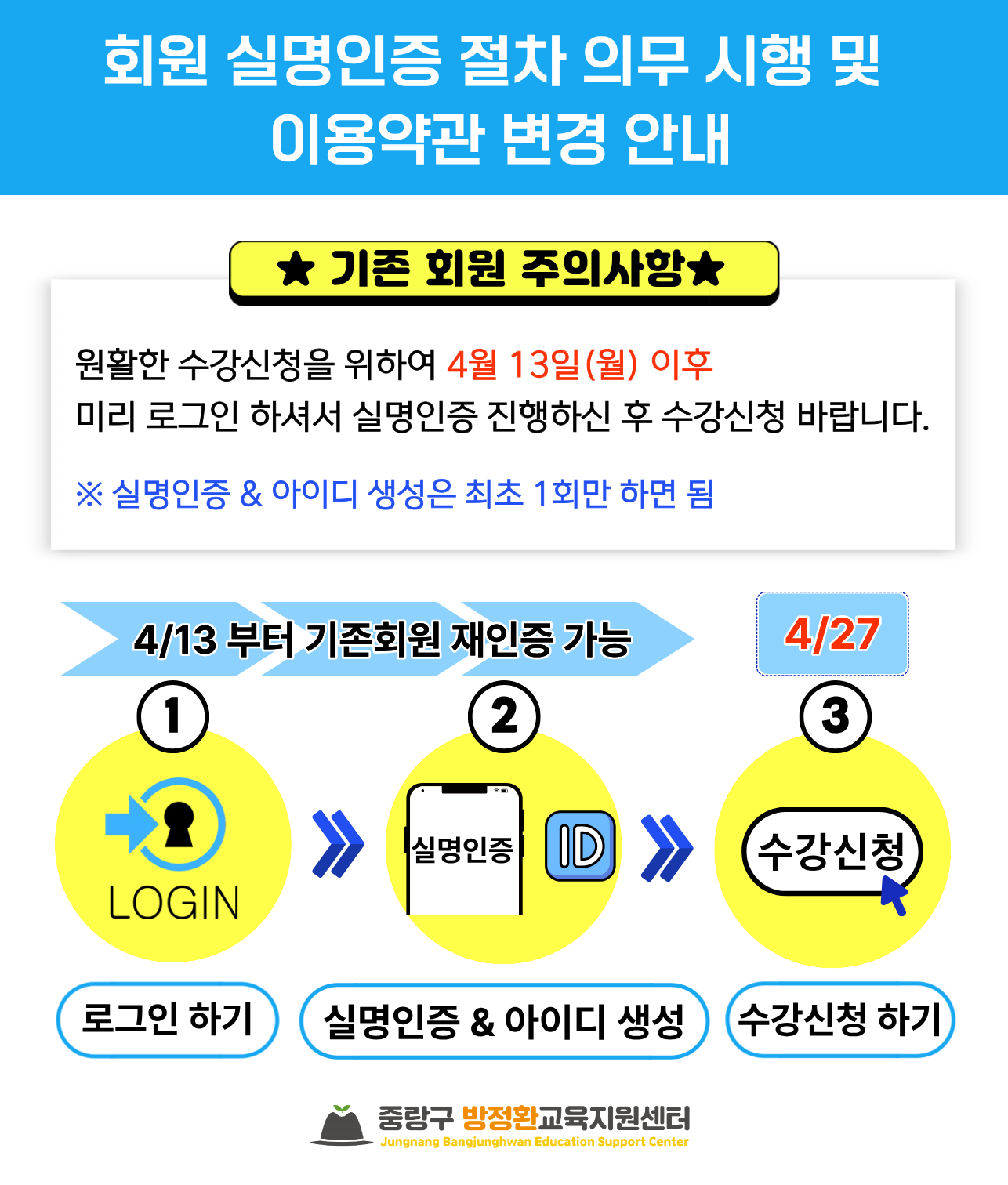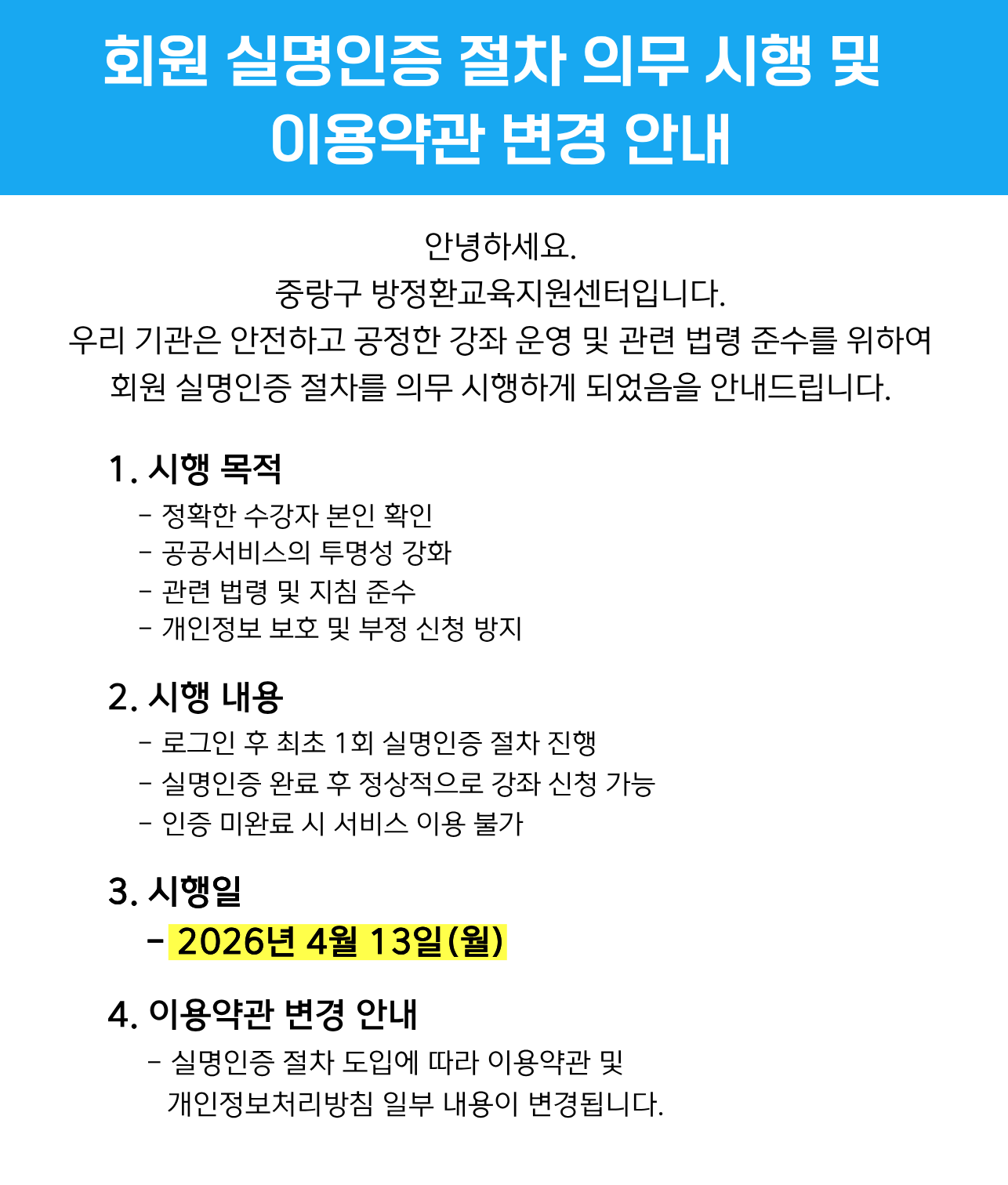 ★ 회원 실명인증 절차 의무 시행 및 이용약관 변경 안내 ★