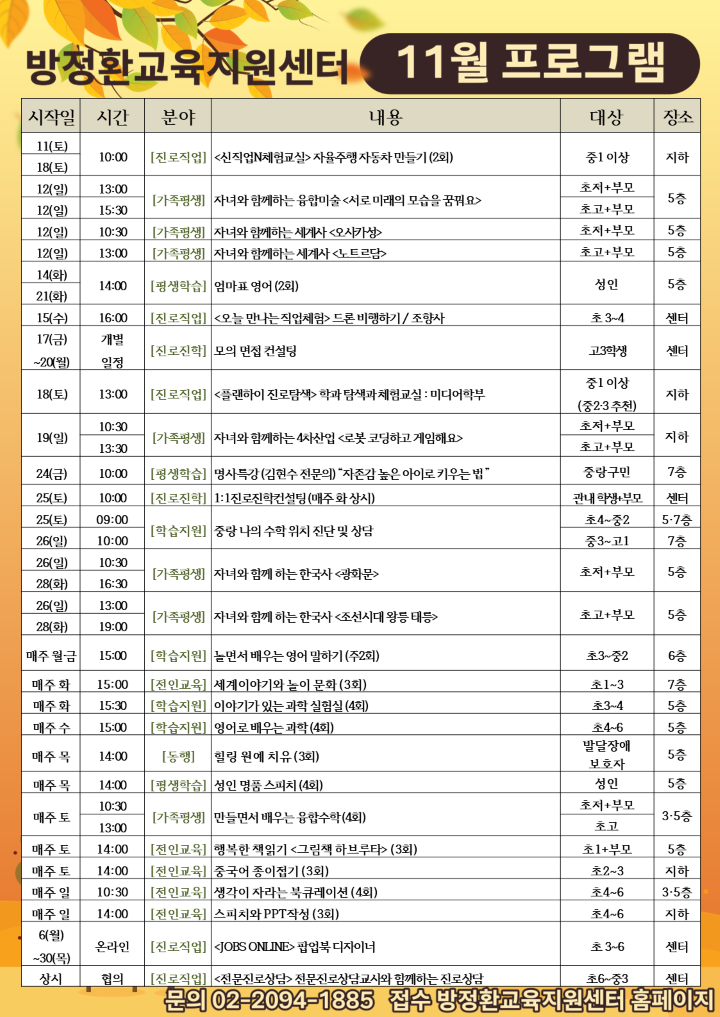 중랑구 방정환교육지원센터에서 운영하는 다양한 행사와 프로그램을 알려드립니다.