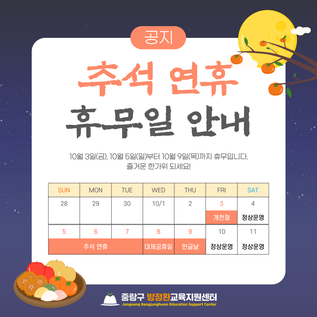 10월 추석연휴 휴관일 안내
