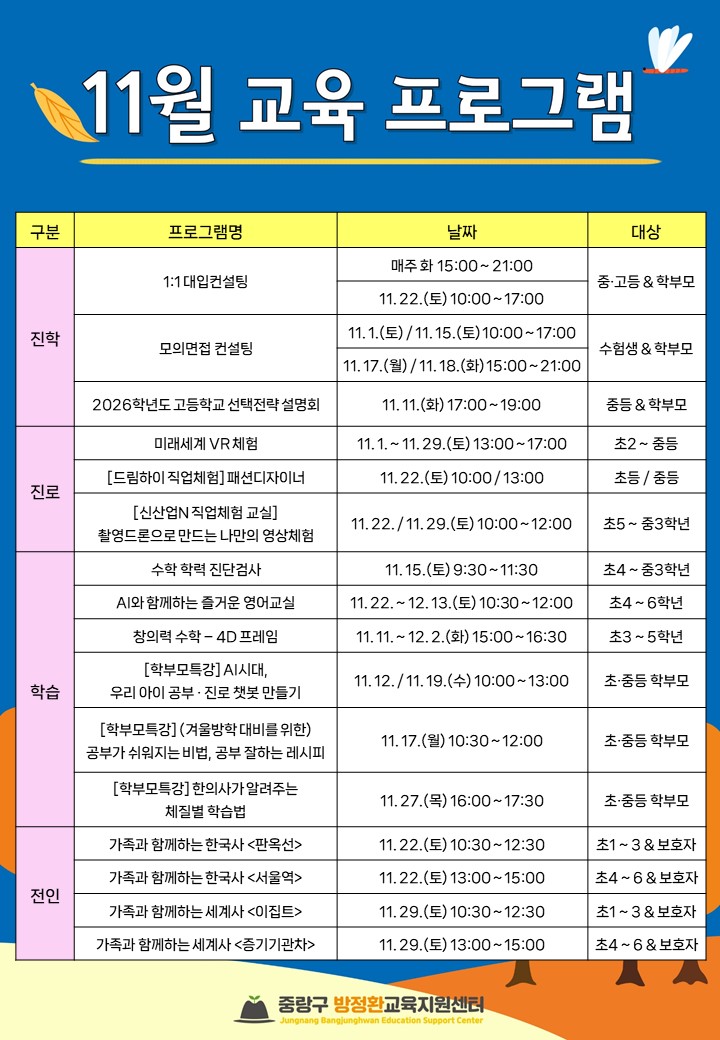 중랑구 방정환교육지원센터에서 운영하는 다양한 행사와 프로그램을 알려드립니다.