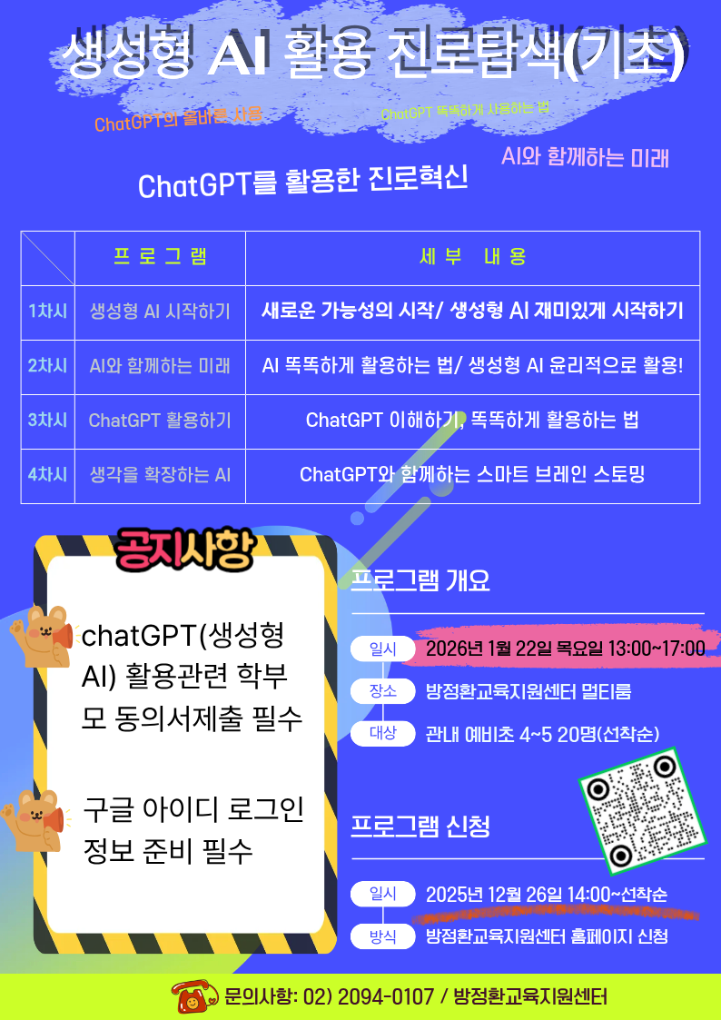 [2026 겨울방학] 생성형 AI 활용 진로탐색(기초) 프로그램 신청 학생 학부모 동의서 제출 안내